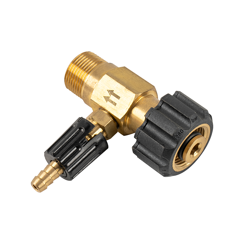Los inyectores químicos de lavadora a presión son un accesorio indispensable para lavadoras de alta presión. Se usan principalmente para mezclar detergentes, desinfectantes u otros líquidos químicos con flujo de agua de alta presión para mejorar los efectos de limpieza o la desinfección. La jeringa generalmente se instala en el extremo de salida de la bomba y está equipada con una boquilla de apertura pequeña. Cuando la lavadora está conectada a una boquilla química con una apertura más grande, la apertura de la boquilla dentro de la jeringa forma una diferencia de presión con la abertura de la boquilla externa, generando así un efecto sifón, abriendo automáticamente la válvula unidireccional de la jeringa, chupando el líquido de limpieza requerido o el desinfectante, e incluso la mezcla con el flujo de agua y finalmente rociando el nocillo. El volumen de succión de la jeringa es ajustable. Los usuarios pueden ajustar el caudal a través de la perilla de acuerdo con las necesidades reales, asegurando un control preciso de la cantidad requerida de limpieza o líquido desinfectante para cumplir con los diferentes requisitos de uso. El cuerpo de la jeringa está hecho de latón, que tiene buenas propiedades anticorrosión, asegurando la estabilidad y la durabilidad durante el uso a largo plazo.