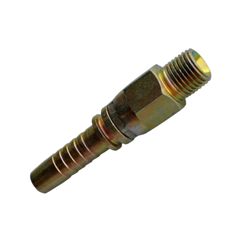 Conector de la manguera de alta presión, la rosca de conexión es la rosca de tubería británica, rosca externa. La característica notable de este conector es que la parte de conexión roscada se puede girar, lo que trae una gran comodidad a la conexión. Se puede atornillar fácilmente con la rosca interna fija, y la manguera de alta presión no se torcerá ni se deformará debido a la conexión del conector, lo que causa daños a la capa de refuerzo de la manguera de alta presión, lo que resulta en problemas de calidad y afectando la vida útil de la manguera; La parte de conexión entre el conector y la manguera de alta presión adopta una forma de barra, de modo que cuando la manguera se aprieta, el conector puede bloquear firmemente la manguera sin que el pegamento se caiga y pueda garantizar el uso a largo plazo bajo alta presión. Esta forma en forma de barra se usa ampliamente en el diseño de conectores y es la forma de conexión más utilizada y más fuerte entre conectores y mangueras; El conector está hecho de acero al carbono de alta calidad, lo que garantiza la resistencia y tiene cierta dureza. La superficie del conector está galvanizada, lo que puede prevenir efectivamente la corrosión y puede usarse durante mucho tiempo en medios ordinarios.